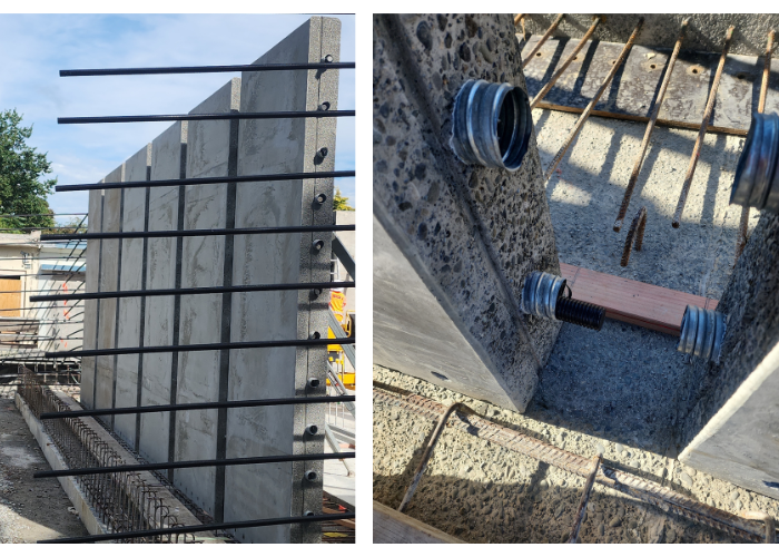 After the panel infills were concreted and reached 30MPa the Macalloy tendons were tensioned to the specified  load and grouted.